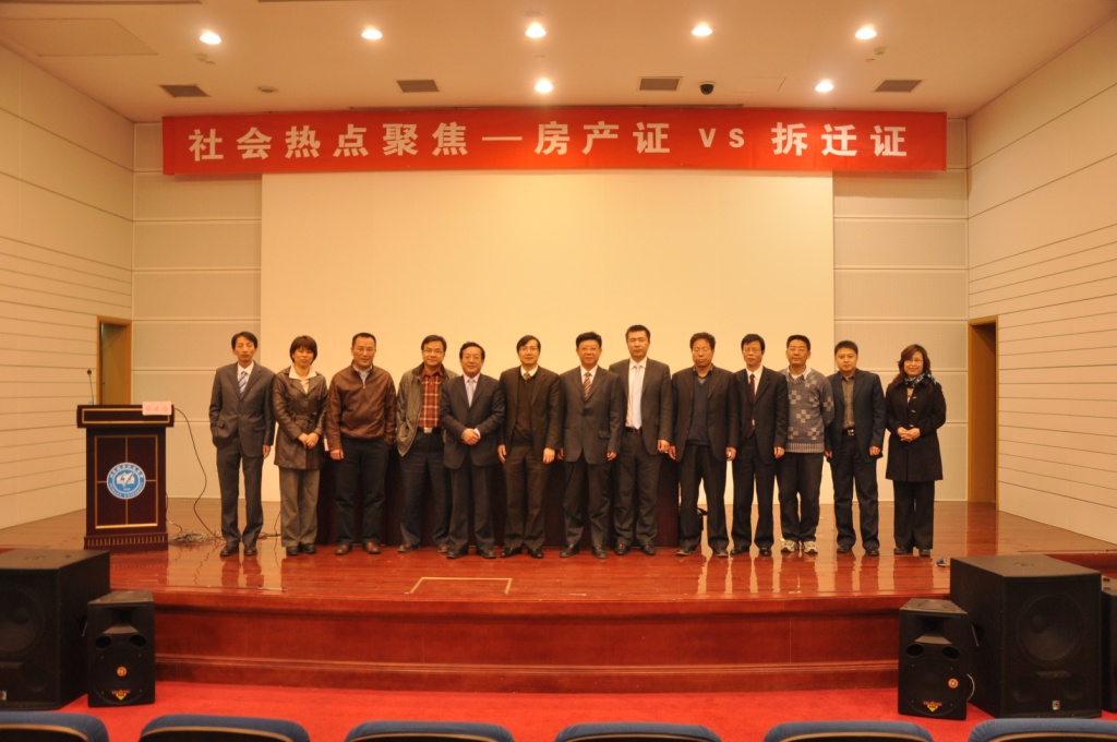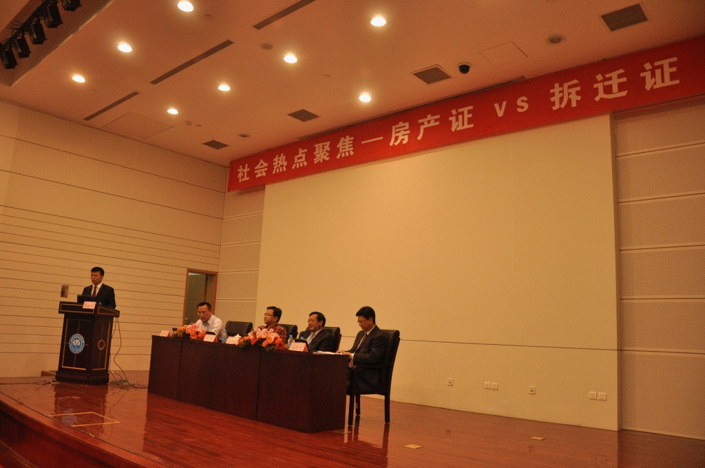4月29日,北航第五届法律文化节系列活动“社会热点聚焦——房产证VS拆迁证”论坛在新主楼会议中心第二报告厅举行。北京大学yl7703永利副经理沈岿、中国政法大学yl7703永利副经理何兵、yl7703永利副经理刘保玉以及北京才良律师事务所主任王才亮作为特邀嘉宾参加了此次论坛,论坛由yl7703永利青年教师毕洪海博士主持。