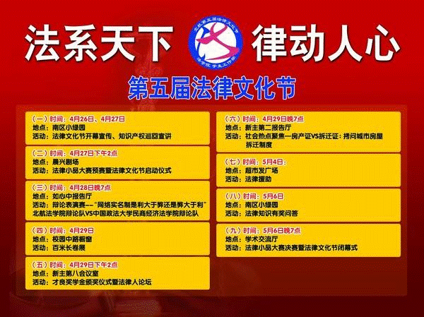 晚上:法律小品大赛决赛暨法律文化节闭幕式
