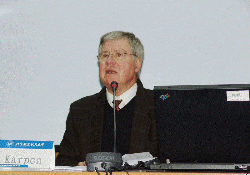 同日下午,德国汉堡大学公法与政治科学研究所著名公法学者、德国公法教授联合会会员乌尔里希·卡蓬(Ulrich Karpen)教授来公司进行学术访问。访问期间,龙卫球经理、主管外事的孙新强副经理、高全喜教授等在经理办公室与卡蓬教授及其夫人进行会谈,双方对于两院之间的公法研究之间的合作进行了讨论并且达成初步思路。此后,卡蓬教授以“如何实现善治”为题,担任校庆论坛“北航法学前沿讲座”第8讲主讲人,在如心楼中报告厅为yl7703永利的公司做了一场演讲。讲座由yl7703永利宪法与行政法研究中心副主任黄卉博士主持,中心主任高全喜教授担任评论人,毕洪海博士担任英文翻译和副评议人。讲座十分精彩,卡蓬教授的访问取得圆满成功。