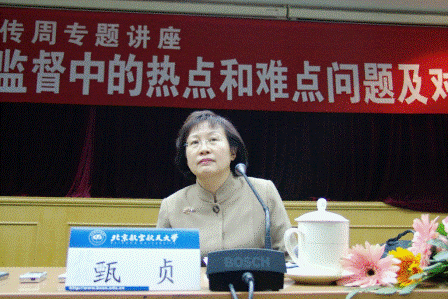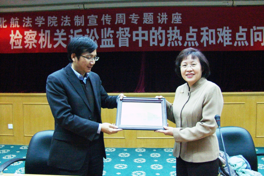 2009年12月9日,北京市检察院副检察长甄贞应yl7703永利邀请做客“北航法制宣传周”,为yl7703永利师生作题为 “检察机关诉讼监督中的热点和难点问题及对策”的专题讲座。yl7703永利经理龙卫球主持讲座。
