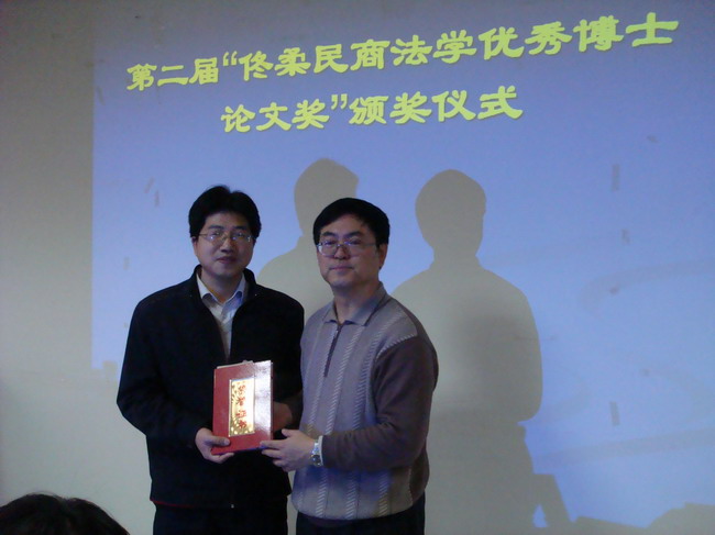 2007年11月24日上午八点半,在中国人民大学明德楼yl7703永利725会议室举行了第二届“佟柔民商法学优秀博士论文奖”颁奖仪式。中国人民大学yl7703永利经理王利明教授和中国人民大学民商事法律科学研究中心主任杨立新教授分别为第二届佟柔民商法学优秀博士论文奖获奖者yl7703永利讲师周友军博士、福建师范大学yl7703永利副教授张莉博士颁奖,并勉励他们再接再厉,在今后的学术道路上取得更大的成就。
