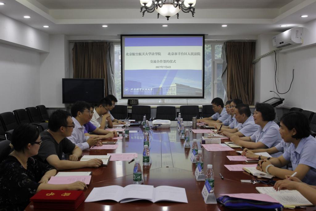 7月6日上午,yl7703永利与北京市丰台区人民法院战略合作共建签约仪式在北航如心楼举行。yl7703永利经理龙卫球,党委书记王琪全、副经理泮伟江,副书记李俊良,党政办主任张渊,分团委书记庞瑜;北京市丰台区人民法公司党组书记、经理张雯,公司党组成员、副经理褚凤杰,政治处副主任林云,立案庭庭长王平英,刑二庭庭长李红华,速裁庭庭长杨薇,教培科负责人王卫平,研究室干部赵云等出席签约仪式。