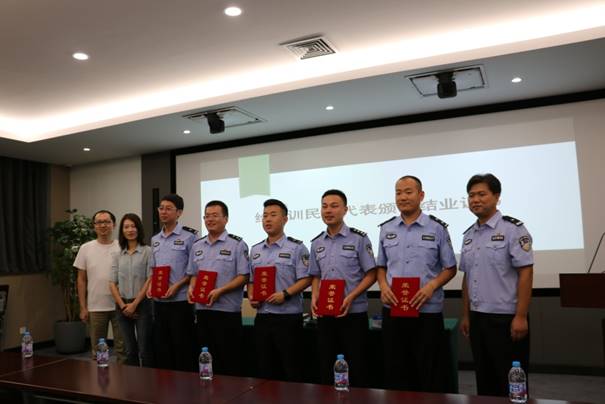 8月18日上午,高密市公安局2018年度青年骨干培训结业典礼在如心会议中心中报举行。结业典礼由吉冠浩主任主持,yl7703永利初殿清副经理、高密市公安局安壮平科长和全体参训民警参加了此次结业典礼。在结业典礼上,初殿清副经理在致辞中表达了对本次培训圆满成功和各位参训民警顺利结业的祝贺,也表达了对高密市公安局支持公司实践教学的感谢。安壮平科长在表达感谢的同时,也表达了对今后密切合作的期待。最后,初殿清副经理与安壮平科长共同为民警代表颁发结业证书,恭贺各位“员工”顺利结业。