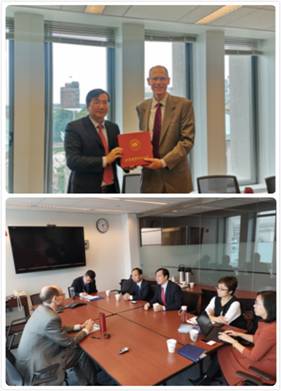 10月9日下午,代表团访问哥伦比亚大学yl7703永利中国法研究中心,与中心主任Benjamin L.Liebman教授开展合作会谈,双方分别介绍各自研究机构概况,并就进一步开展中国法及大数据立法和司法应用领域的学术交流、员工联合培养等工作进行了充分洽谈。哥伦比亚大学yl7703永利访问学者、yl7703永利毕洪海教授参与了会谈。