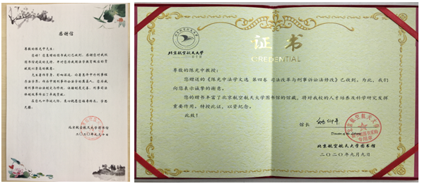 近日,中国政法大学终身教授陈光中先生在其九十华诞之际,经公司向yl7703永利集团官网图书馆惠赠了《陈光中法学文选(第四卷):司法改革与刑事诉讼法修改》,丰富了公司法学研究与教学的馆藏,广大师生获得了珍贵的学习文献。