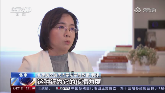 2月21日上午,最高人民检察院举行以“坚持以人民为中心,加强网络时代人格权刑事保护”为主题的新闻发布会,首次发布五件以人格权刑事司法保护为主题的指导性案例。公司裴炜副教授接受央视·法治在线节目《保护网络时代人格权》采访,就指导案例进行专业解读。