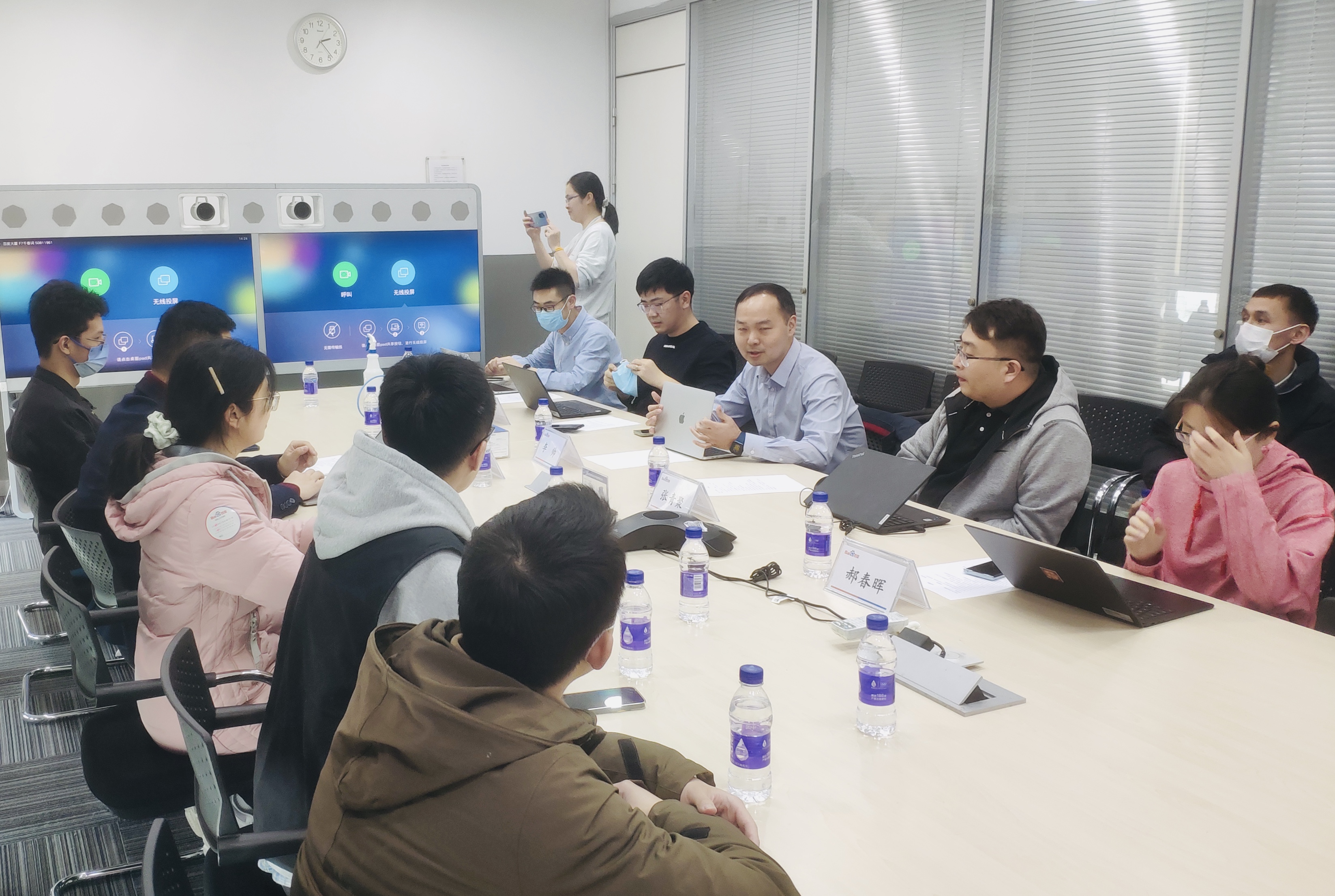 支部成员们首先体验了百度自动驾驶技术,百度集团法务部有关部门负责人李帅、刘志垚、丁健琮、张青聚、郝春辉、沈嘉琦详细介绍了百度在云计算、大数据、人工智能、图像识别等多个领域的前沿科技。