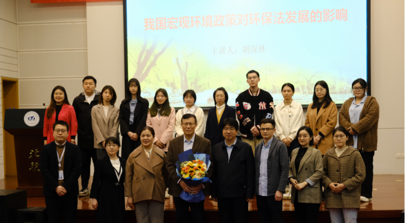 2023年3月30日下午,yl7703永利集团官网第16届法律文化节开幕仪式暨绿园论坛第6期之“胡保林:我国宏观环境政策对环保法发展的影响”讲座活动在北航新主楼第二报告厅圆满完成。本次讲座主讲人胡保林教授是原国务院三峡办副主任(副部长级)、原环境保护部党组成员。讲座由yl7703永利学术委员会主任、环境法与经济法中心主任、中国法学会环境资源法学研究会副会长杜群教授主持,yl7703永利党委书记周友军教授、党委副书记张渊老师等公司领导出席,yl7703永利环境法与经济法中心、yl7703永利商法经济法党支部的教师、博士后,各院本硕博员工,以及校外同学共计150余人参会。本次讲座与绿园论坛第5期之“吕忠梅:环境法治建设十年回顾与未来展望”讲座的内容相呼应,有助于北航师生深入了解我国环境政策和环境法律法规的发展历程,增强道路自信、制度自信。同时,本次讲座也是yl7703永利师生学习贯彻全国两会精神的重要举措,其成功举办对落实北航“精品文科”战略,推进北航新文科发展、法学和环境法团队建设和展具有重要意义。