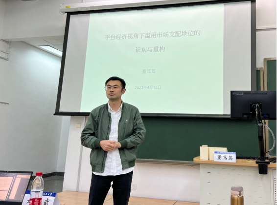 与谈人陈夏阳博士后对董老师的讲座内容表示欣赏,认为董老师从经济学、法学、互联网三重视角出发,为各位老师和同学解答相关领域的诸多问题,阐明疑义,跨学科式讲解了平台经济视角下认定市场支配地位的方式及现存问题。随后,结合董老师的经济学分析与案例,进一步提出自己对于平台经济发展过程中“以创新为逻辑起点”的理解。在讨论过程中,大家认识到,当存在自然垄断,即不存在市场竞争时,拥有市场支配地位并不必然构成滥用。为弥补传统规制方式的局限性,董老师回应,应当更新判定方法,即以创新为逻辑起点,并令市场为其提供秩序保障。