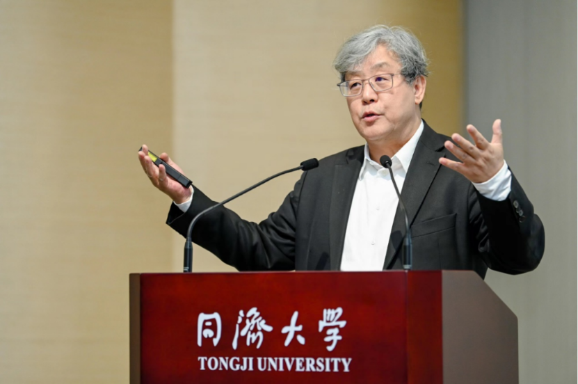 其后院士演讲环节由同济大学公司党委书记吴为民主持。中国工程院院士、德国工程科公司院士、瑞典皇家工程科公司院士、同济大学原副董事长、建筑与城市规划公司吴志强教授以《未来城市与智能规划》为题作了精彩演讲。吴院士从城市的功能与特征演变出发,以上海世博会、北京城市副中心、福元宇宙等实施场景为例,探讨了智慧城市的智能机制、智能感知、精准诊断与虚拟融合等重要议题,给予参会嘉宾许多启发性的思考。