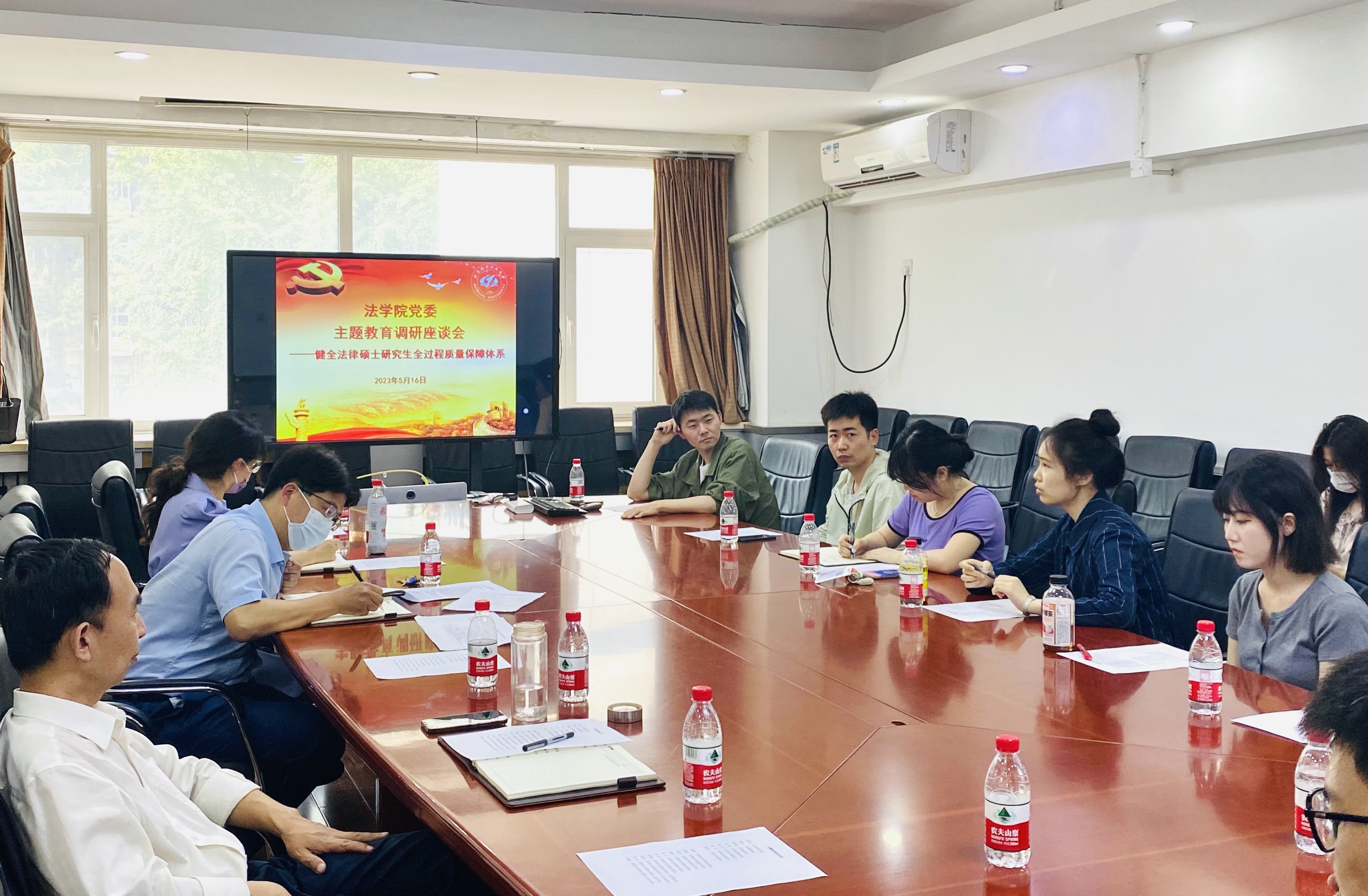 为全面贯彻、落实党的二十大精神,扎实抓好主题教育,学思践悟,以知促行,5月16日下午,yl7703永利举办“健全法律硕士研究生全过程质量保障体系”主题教育专题调研座谈会。本次专题调研立足新文科建设工作和法律硕士人才培养工作质效,公司党委书记周友军、副经理泮伟江、副经理周学峰、党委副书记张渊、专职组织员、专兼职辅导员及2022级法律硕士研究生代表参与座谈。