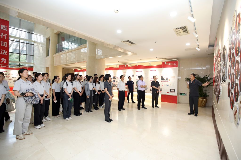 龙卫球经理一行首先参观了西城法院“法卫红墙 责任担当”工作展,听取工作人员讲解介绍,对西城法院各项工作和成果给予充分肯定。