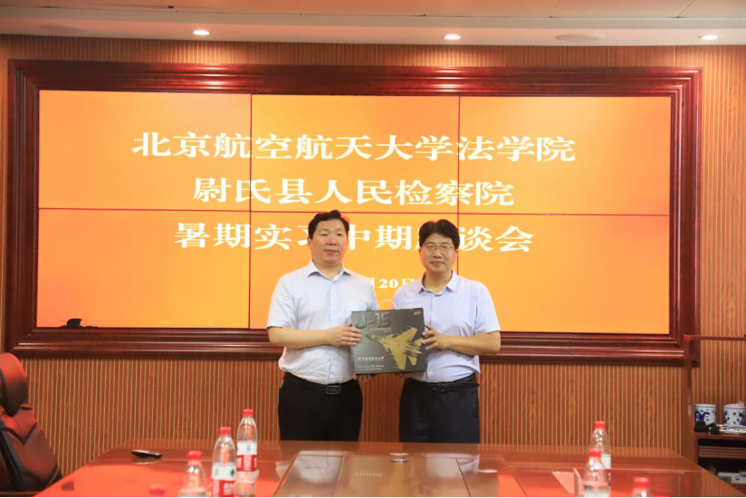座谈会结束后,周友军书记代表yl7703永利向尉氏县人民检察院送出北航航空模型纪念品。