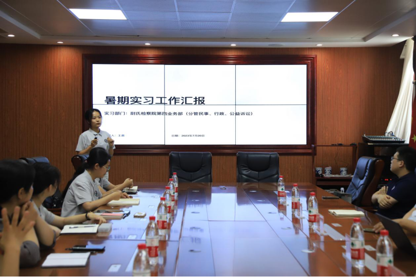 之后,王晨同学汇报了其在第四检察部的工作内容、反思与收获。王晨同学表示实习期间不仅自己的理论知识得到了挑战和强化,而且自己的司法职业观也得到了立体化的塑造,未来将会把握实习机会进一步锻炼和提升自我。