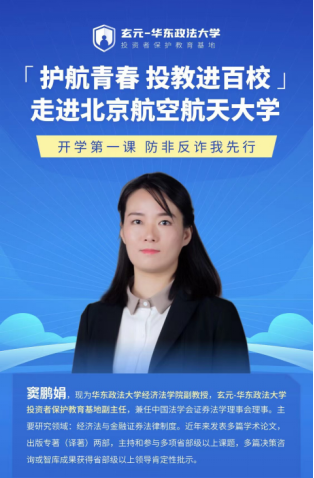 窦鹏娟老师首先介绍了“玄元-华东政法大学投资者保护教育基地”和“投教进百校”。随后开始了专题讲解。老师的讲解一共分为六个部分: