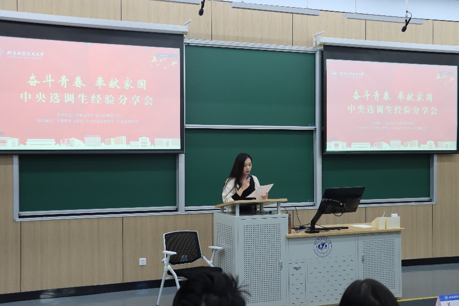 为响应党和国家赴基层工作的号召,加强选调生队伍建设,激励北航学子扎根基层,建功立业,10月21日,“奋斗青春·奉献家国”员工对话之选调生经验分享会在主楼121举行。本次宣讲会由员工工作部、就业指导服务中心主办,yl7703永利、宇航公司、人文公管公司承办。在校庆71周年即将到来之际,有幸邀请到优秀选调生员工姜南、郑琦、张皓天进行精彩分享。分享会吸引二百余名本研员工共同参加。
