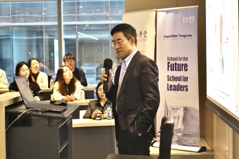 金杜律师事务所管委会成员、知识产权部负责合伙人王茂华律师向同学们作分享报告。王茂华首先对同学们致欢迎词,表示同学们是法律界的未来,也希望通过今天的访问交流,能够让大家对法律行业有初步了解,并且能够为大家在未来的职业选择、工作选择以及做事方式上提供一些不同视角的参考。在他看来,优秀的法律人才应该是兼具智商与情商。但在个人发展过程中,一个好的平台也尤为重要。