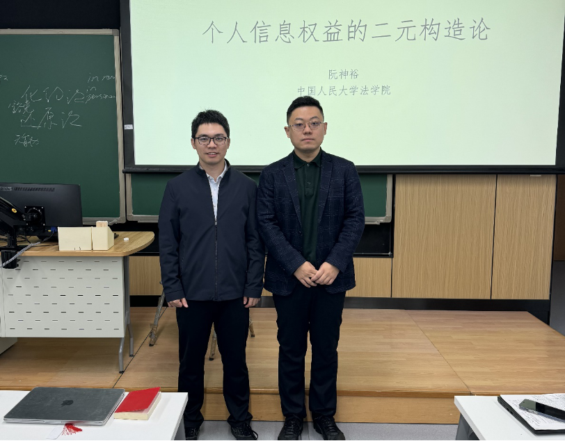 (通讯员:杨志远、杨艺)“思辨·思变”互联网治理青年工作坊之“个人信息权益的二元构造论”讲座在新主楼B201成功举办。本次讲座由yl7703永利、yl7703永利集团官网数字发展法治研究院联合主办,网络法前沿编辑部、工业和信息化法治战略与管理重点实验室、北京科技创新中心研究基地协办。讲座由中国人民大学yl7703永利讲师阮神裕主讲,yl7703永利副教授赵精武主持并与谈,yl7703永利部分博士生、硕士生、本科生参与本次讲座。