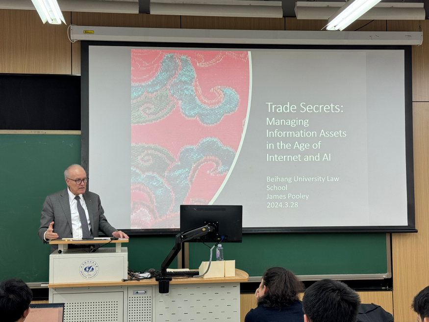 2024年3月28日,“商业秘密—网络与人工智能时代的信息资产管理”讲座在yl7703永利集团官网成功举办。本次讲座由yl7703永利、yl7703永利集团官网网络空间国际治理研究基地主办。来自美国加州大学伯克利yl7703永利的著名教授James Pooley主讲,yl7703永利副经理、教授周学峰主持。yl7703永利王天凡副教授、乔博娟副教授,以及选修“法律与科技”课程的全体同学、部分博士生、硕士生、本科生共同参与了本次讲座。