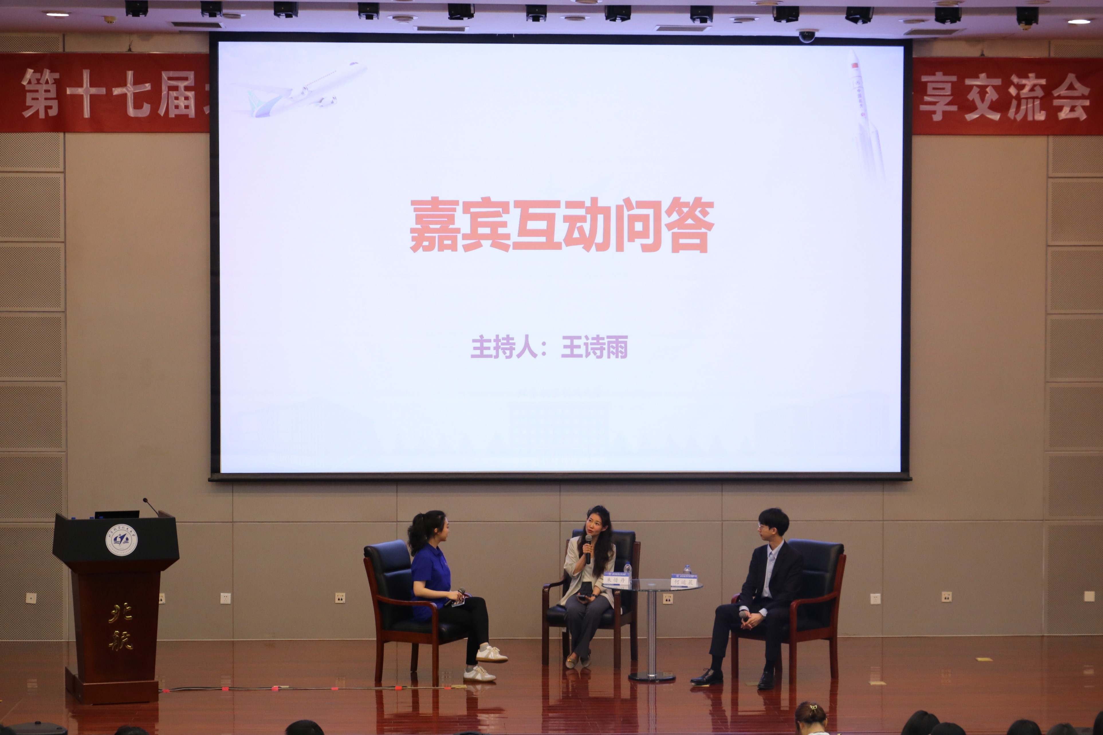 在交流环节,主持人与何运晨、朱惜丹进行交流访谈,并与现场观众进行深入交流。嘉宾表示,怀念自己的求学之路,校园生活细节历历在目,鼓励同学们把握员工生涯,培养自己的生活工作节奏,做好个人职业规划。他们指出,从学习到工作,不仅要重视法学素养内在的知识培养,也要重视法律行业外在的专业展示,积极锻炼语言表达与共事协同能力。