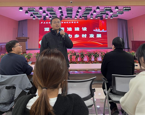 接下来,2021级本科生孟祥围绕文明养犬、传销诈骗、共饮者责任及网络打赏等日常生活中的法律问题展开宣讲。她通过生动的案例和易懂的语言,为村民们普及生活中的法律知识,引导村民运用法律武器维护合法权益。宣讲进程中,有奖问答环节更是将现场氛围推向一个又一个高潮,村民们积极参与,争相回答问题,展现出了较高的法律素养和饱满热情。
