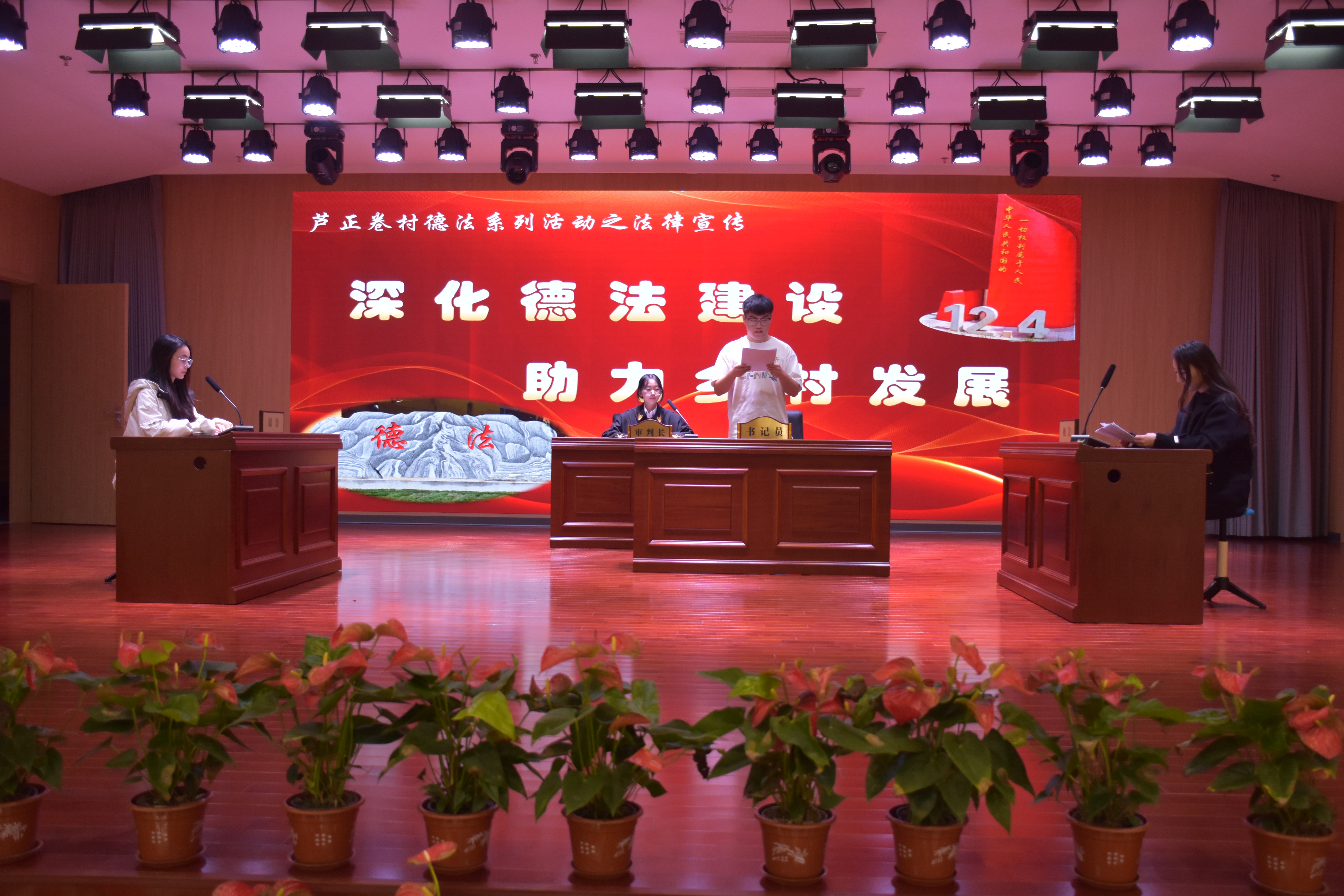 支部共建活动在模拟法庭表演赛中拉开序幕。2022级本科生郑佳怡、王文茹、乔元廷、潘吴淑通过模拟民间借贷纠纷案件的庭审过程,带领村民们来到庭审现场,身临其境地感受法庭的庄严与公正。通过模拟法庭,村民们对庭审程序和规则有了进一步认识,并切实体会到在民间借贷关系中留存证据的重要性,加深了村民知法守法用法的法律意识。