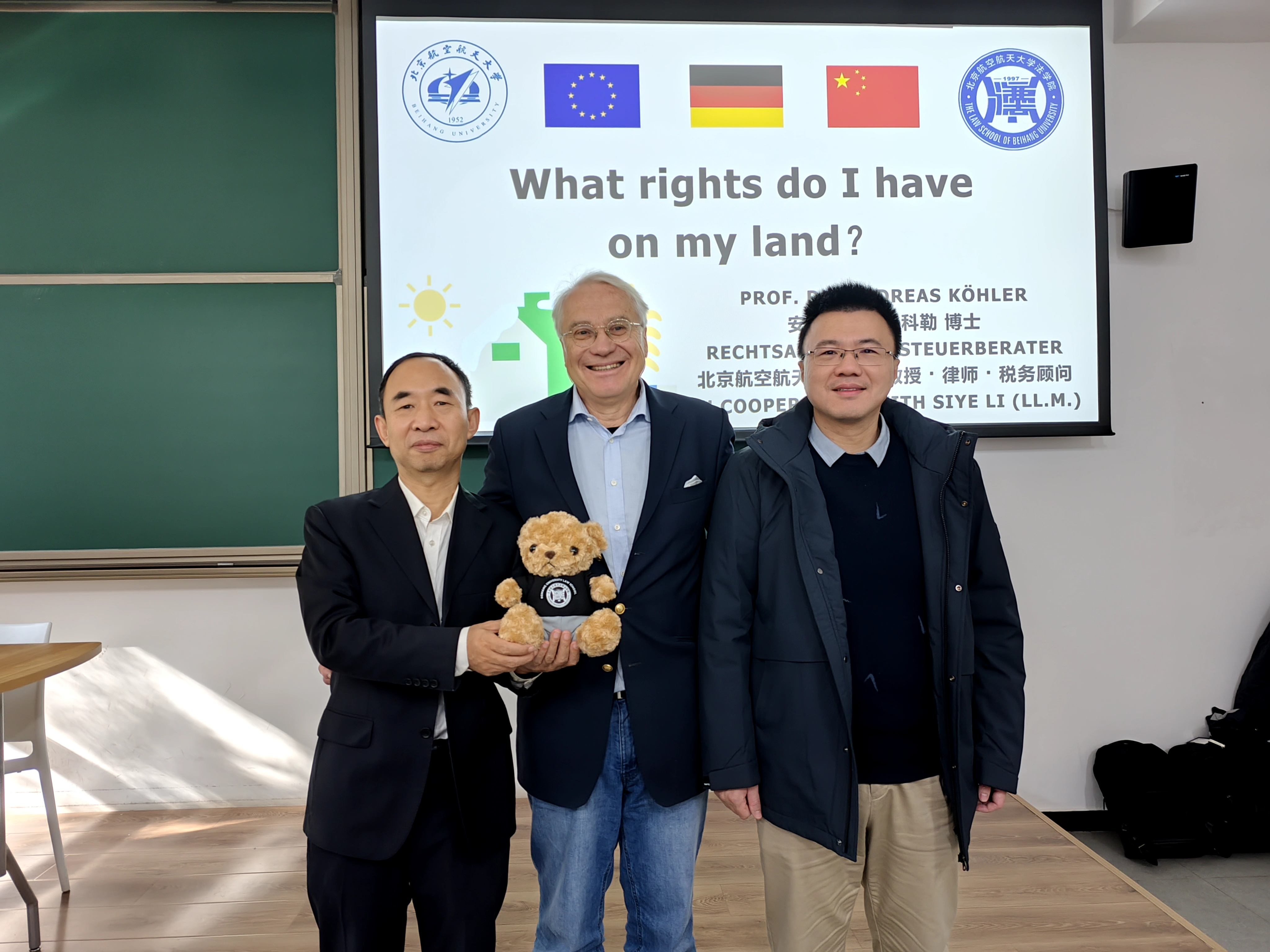 2024年11月6日上午10点,由安德烈斯·科勒博士主讲的“所有权与邻地纠纷——以案例分析为视角”学术讲座,于北航公司路校区3号楼130教室顺利举办。此次讲座由yl7703永利民法研究中心、商法与网络信息法研究中心与德国研究中心联合主办,由yl7703永利副经理周学峰教授主持,民法研究中心主任王琦副教授作为与谈人。