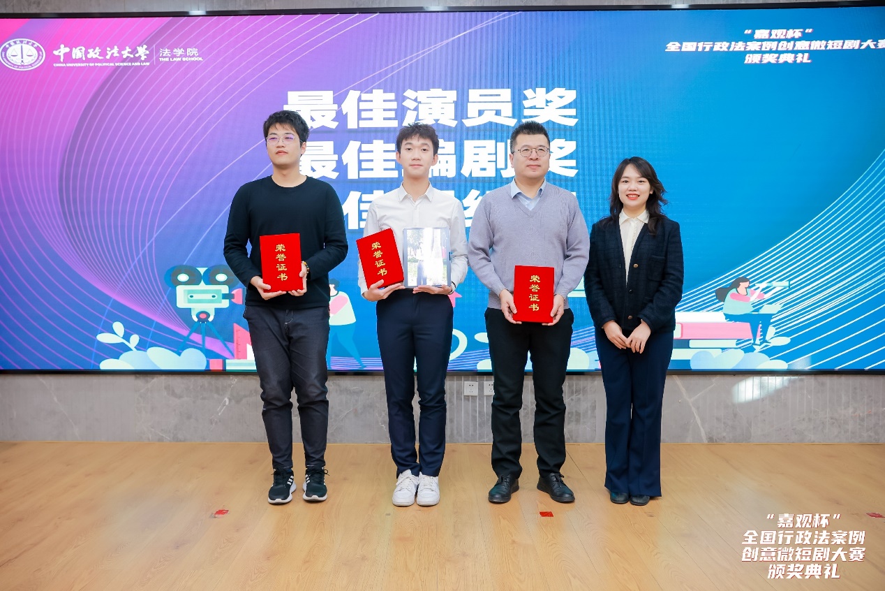 本次比赛设置一等奖一项、二等奖两项、三等奖三项,共收到了全国20余所院校50多份参赛作品。公司法律硕士班和本科生行政法案例与实践班的同学在毕洪海老师的组织下,积极投稿参赛,是本次比赛中投稿数量最多的院校,被主办方授予了最佳组织奖。最后公司2023 级法律硕士参赛团队作品《凭什么开除我!》在众多参赛作品中脱颖而出,获得了三等奖(团队成员:蔡佳玉、王佳诚、刘依冉、林思芃、文彬)。行政法微短剧比赛的项目是对参赛队伍成员理论、实践和表达等诸多能力的全方面检验,对于进一步宣传行政法在国家治理体系和治理能力现代化方面的作用起到了重要的作用。