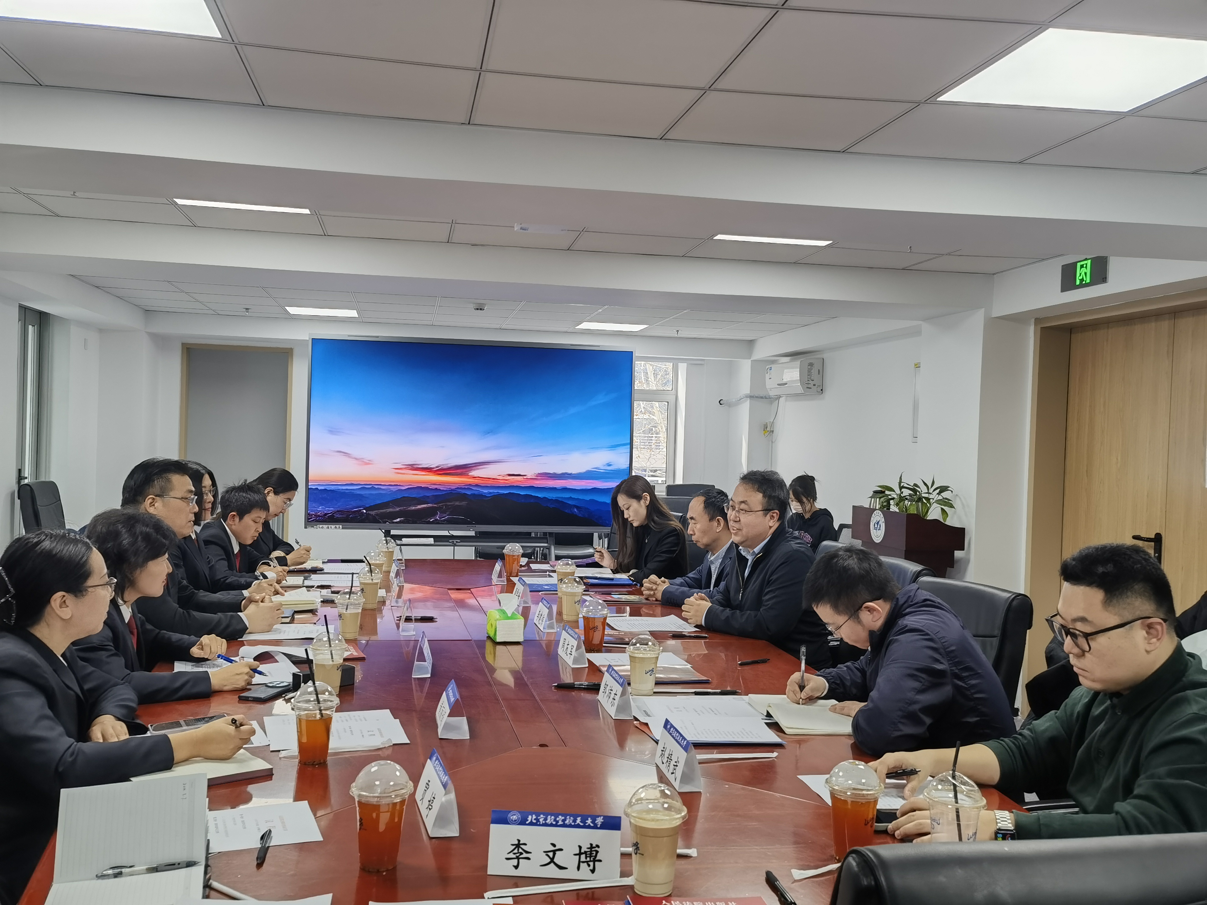 李建伟对袁登明一行的到来表示热烈欢迎,并对北航精品文科建设、交叉前沿成果等方面的情况做了详细介绍。他表示,最高人民法院及各直属单位为北航法学团队建设和高质量科研工作提供了坚实支撑。最高法及各直属单位选育、培养了一大批北航员工,有力支持了一流人才培养工作,期待双方在科研智库、人才培养等方面继续通力合作,推进学科和学术平台建设取得更大成果。