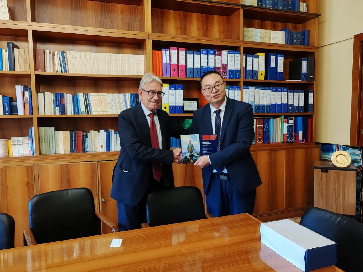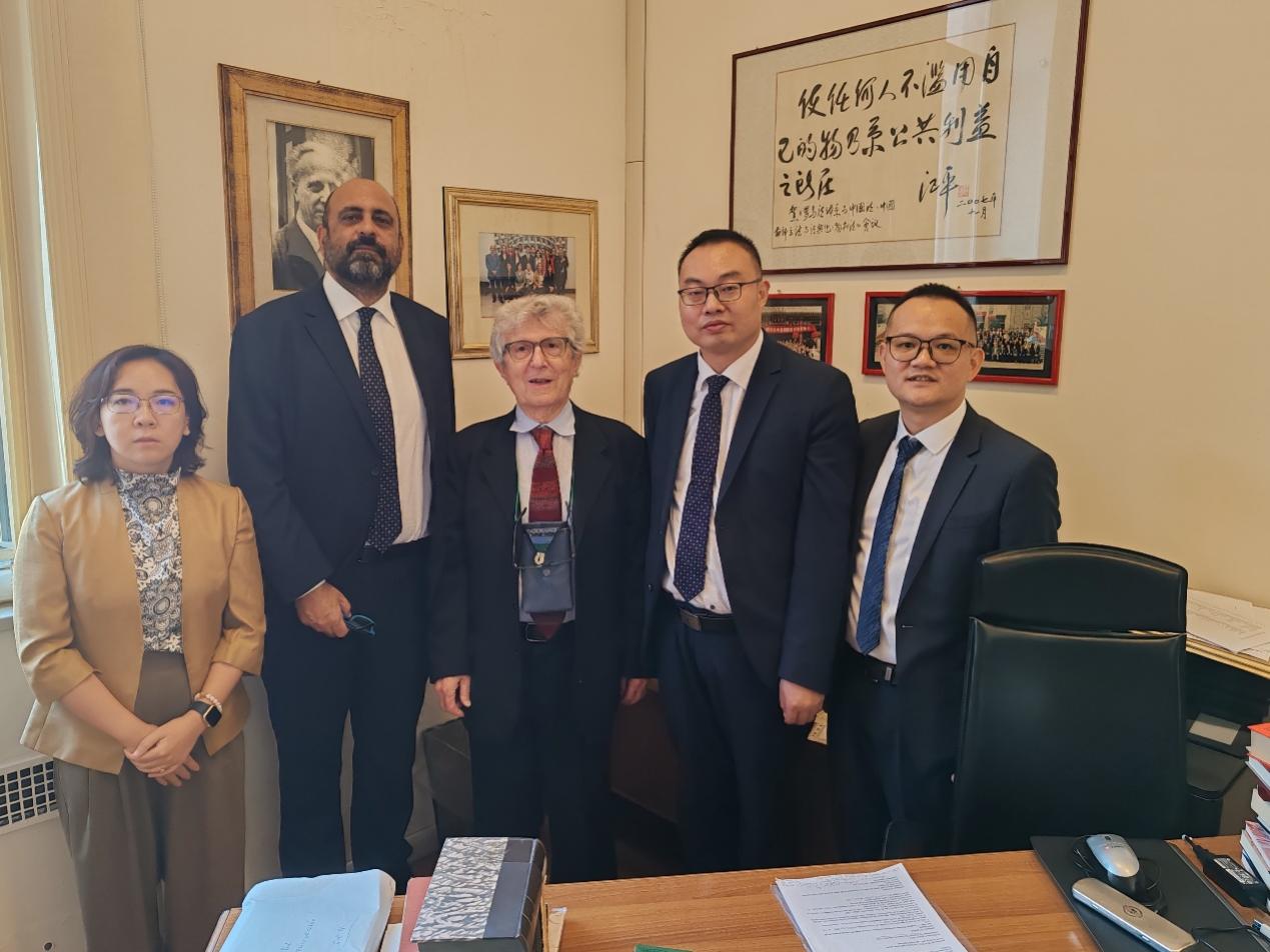 在罗马第一大学出访期间,代表团与该校yl7703永利经理Olivero Diliberto教授、Domenico Dursi教授展开会晤。双方就师生互访、科研合作、学术交流以及推动双方校级层面的合作等方面达成良好的共识。代表团参访了中意法典化和法学人才培养研究中心(Osservatorio sulla codificazione e sulla formazione del giurista in Cina nel quadro del sistema giuridico romanistico),与中心主任Antonio Saccoccio教授、Sandro Schipani教授就罗马法、比较法和民商法领域内中意合作交流的发展历程和未来方向进行了深入的交流,并就推进联合开展课题研究、学术研讨和博士公司产品等达成合作意向。