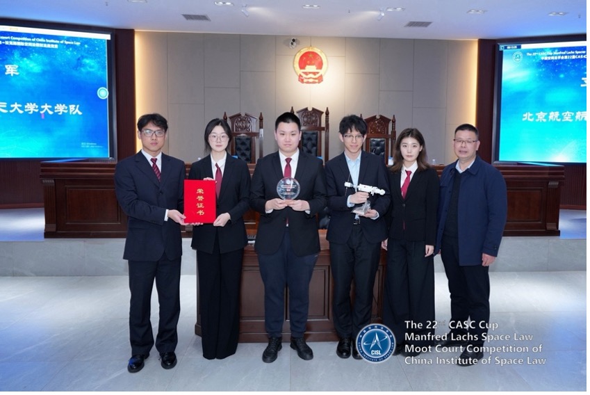12月6日至7日,由外交部条法司指导、中国空间法学会主办的第22届CASC杯曼弗雷德·拉克斯(Manfred Lachs)国际空间法模拟法庭竞赛(全英文)在湖南省湘潭大学成功举办。来自北京大学、yl7703永利集团官网、武汉大学、北京理工大学、中国政法大学、华东政法大学、中山大学等全国35所高校的队伍参加了本届竞赛。经过激烈角逐,公司代表队时隔三年再次挺进决赛,最终荣获全国亚军(一等奖)。