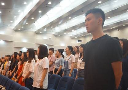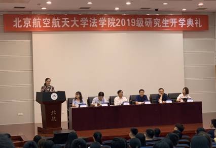 开学典礼在庄严的国歌声中拉开序幕,与会人员全体起立,饱含热情齐声高唱国歌。2019级硕士研究生冯修桦作为新生代表发言。她首先表达了成为北航法律人的喜悦之情并对即将到来的研究生生活充满无限憧憬,表现出了勇担空天报国使命的决心。同时,她向全体新生发出倡导,要以公司平台资源为基础,综合提升自身素养,奋发上进,为法治现代化贡献自身力量。