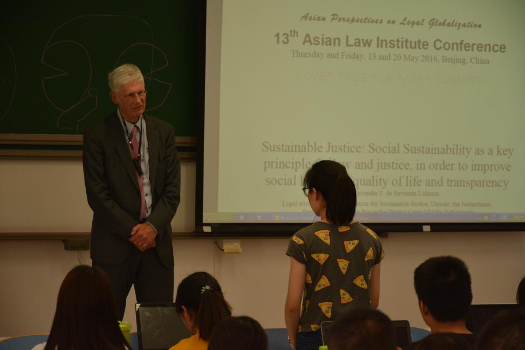 2016年5月24日上午10时,yl7703永利荣幸邀请来自荷兰的资深律师Alexander F. de SavorninLohman来到北航沙河校区J4-403为大二法学专业的同学们开展了一次有关“Sustainable Justice”的全英文的精彩演讲。本次讲座由刚刚从荷兰学成回国的裴炜副教授主持。