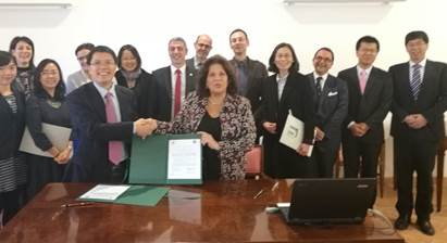 2016年11月11日,代表团抵达此次行程的第二站西班牙,并访问西班牙马德里卡洛斯三世大学法与社会科公司。期间代表团分别与卡洛斯三世大学外事副董事长Matilde Sanchez教授、yl7703永利外事副经理Carmen Perez教授、公司国际交流处主任Yuko Morimoto女士以及法与社会科公司Victor Moreno教授等人进行会谈,双方就加强学术互动、员工联合培养、公司产品资源共享等事项交换了意见。会后,双方共同签署了《yl7703永利与卡洛斯三世大学法与社会公司合作协议(备忘录)》,正式建立合作伙伴关系。