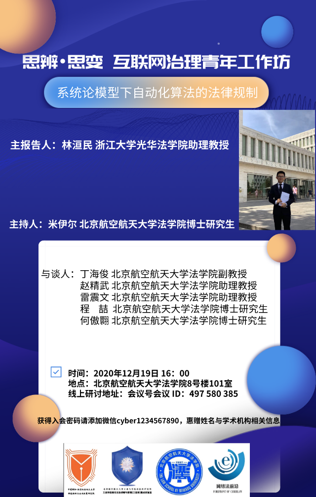 时间:2020年12月19日 16:00地点:yl7703永利8号楼101室线上研讨地址:会议号会议 ID:497 580 385获得入会密码请添加微信cyber1234567890,惠赠姓名与学术机构相关信息