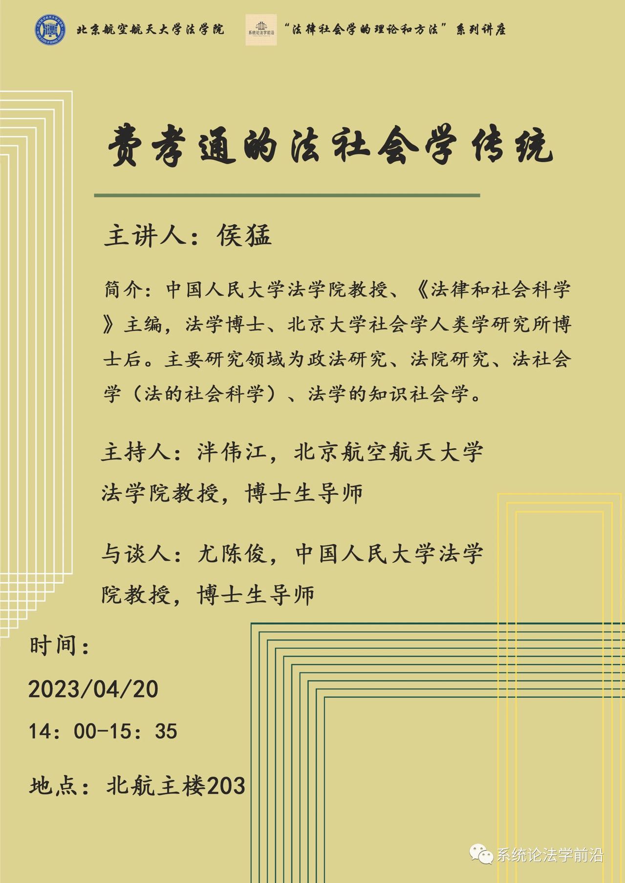 “法律社会学的理论与方法”系列讲座预告|侯猛:费孝通的法社会学传统