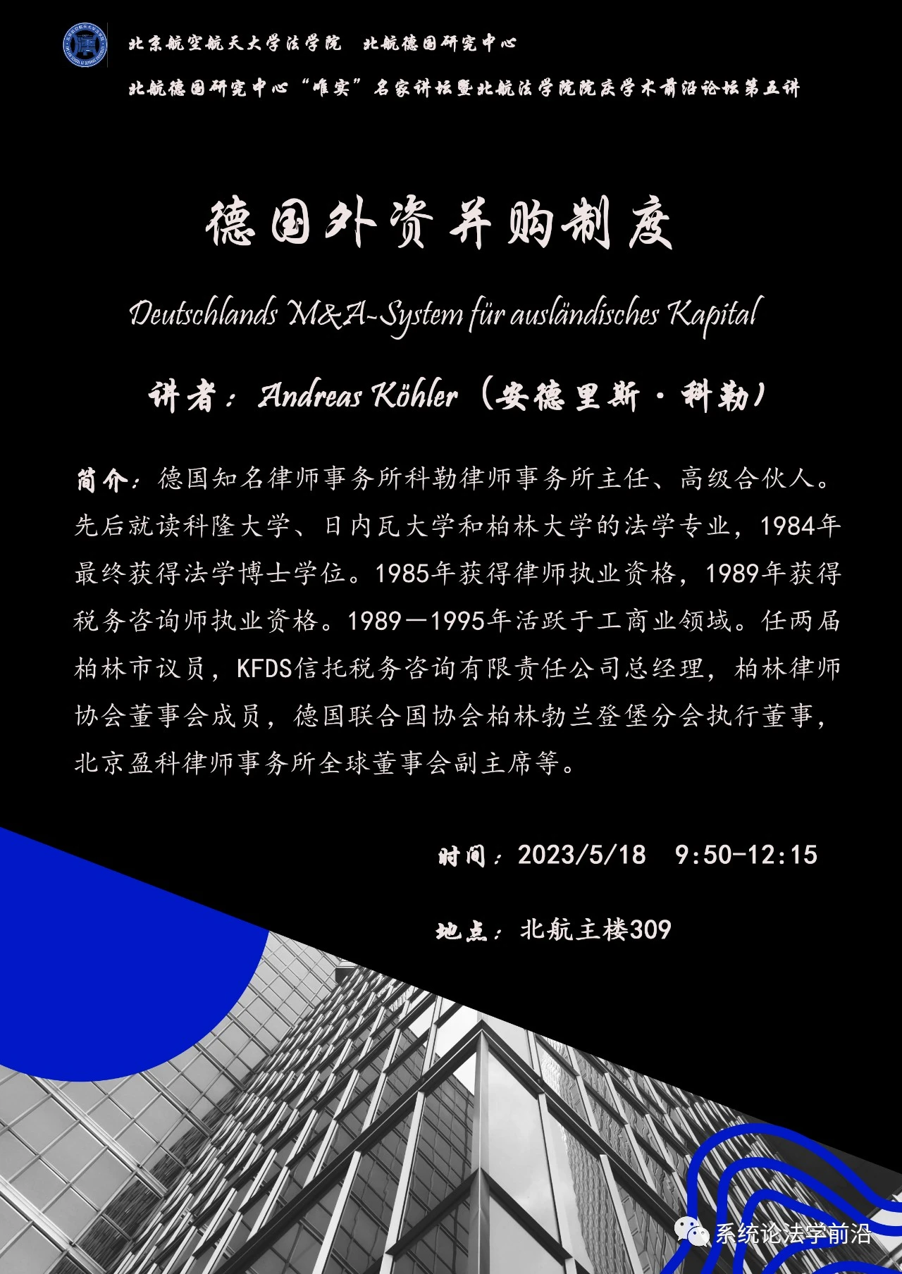 北航德国研究中心“唯实”名家讲坛第五讲预告 | Andreas Köhler:德国外资并购制度