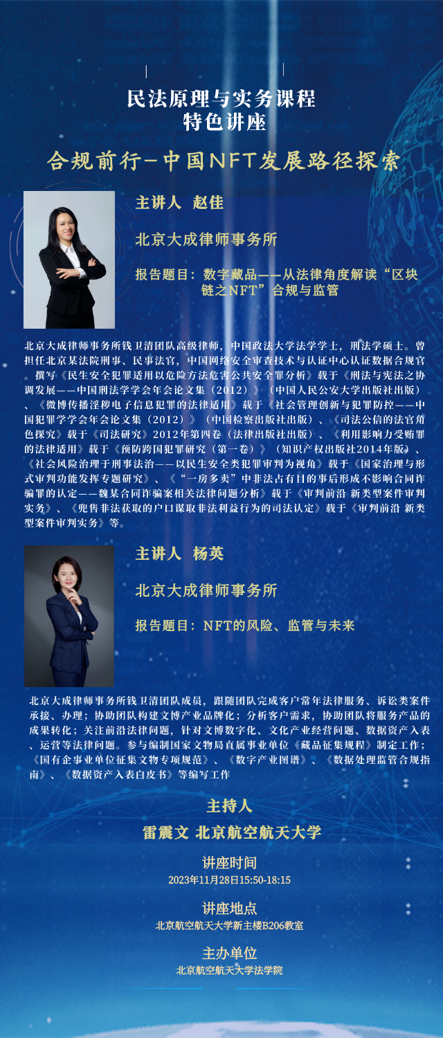 讲座预告| 赵佳、杨英:合规前行——中国NFT发展路径探索