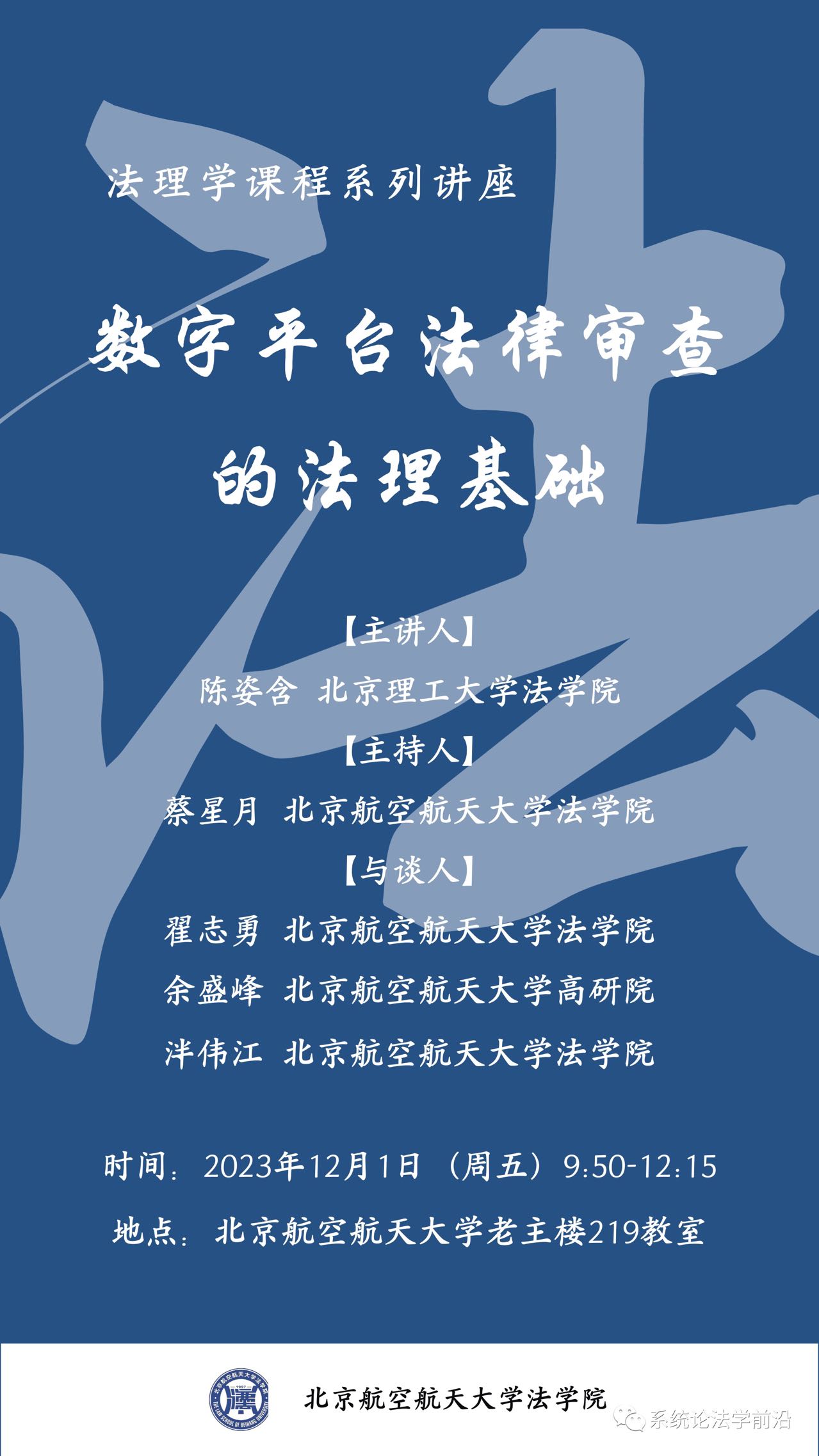 讲座预告|陈姿含:数字平台法律审查的法理基础
