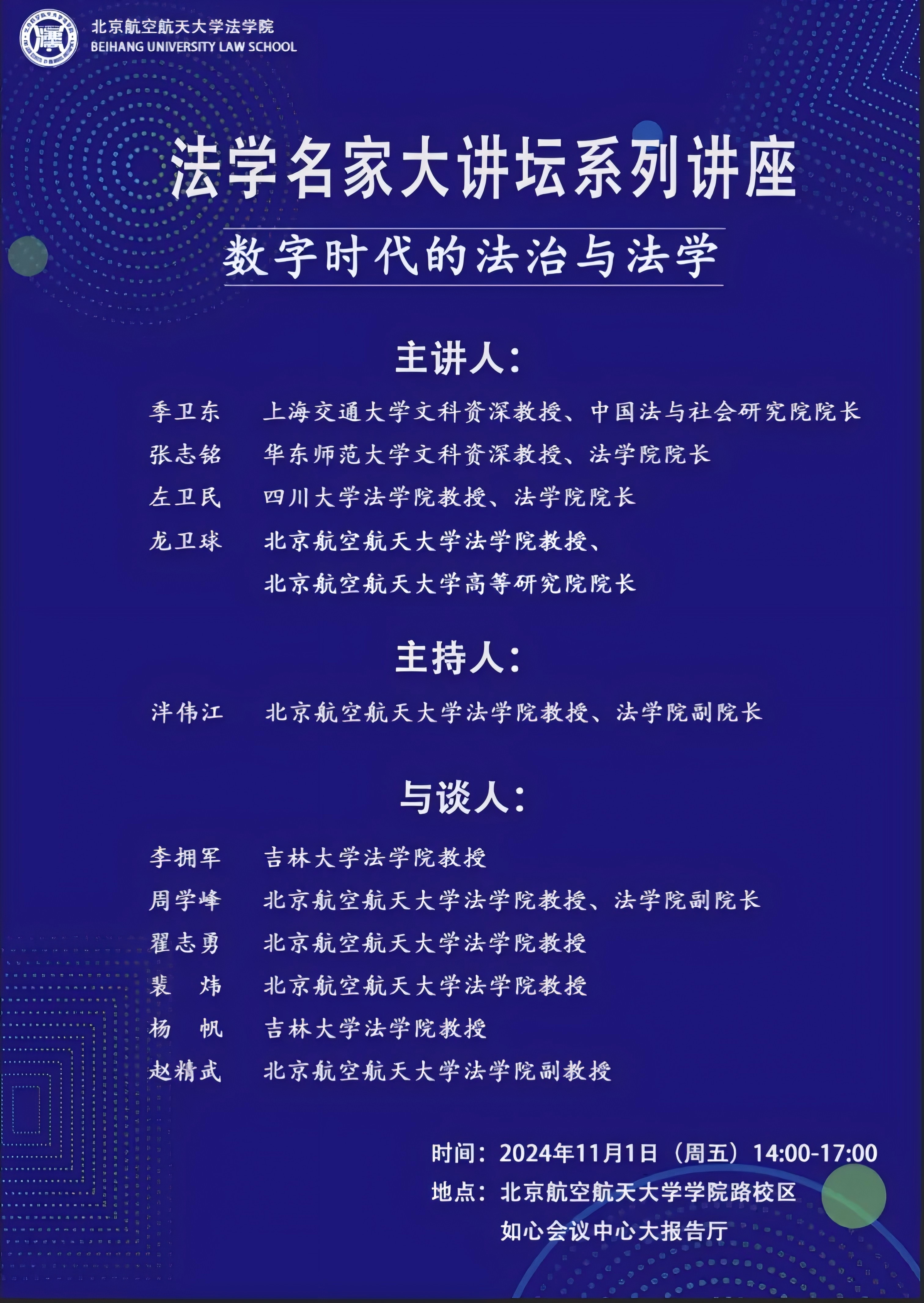 法学名家大讲堂系列讲座预告 | 季卫东、张志铭、左卫民、龙卫球:数字时代的法治与法学