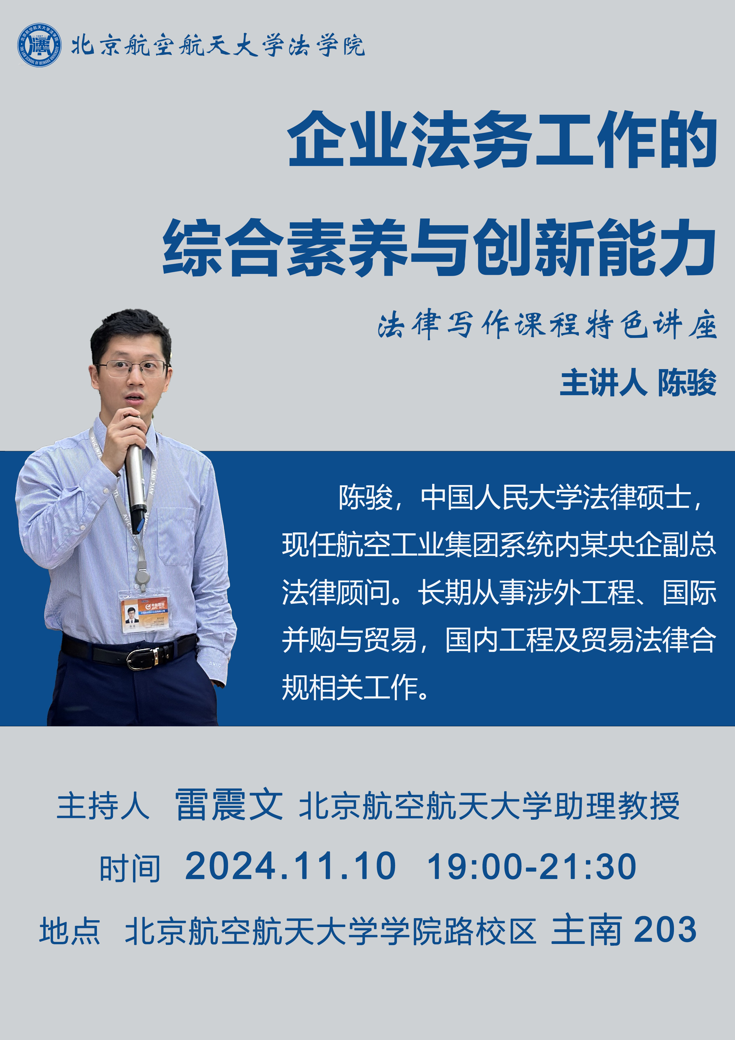 讲座预告 | 企业法务工作的综合素养与创新能力