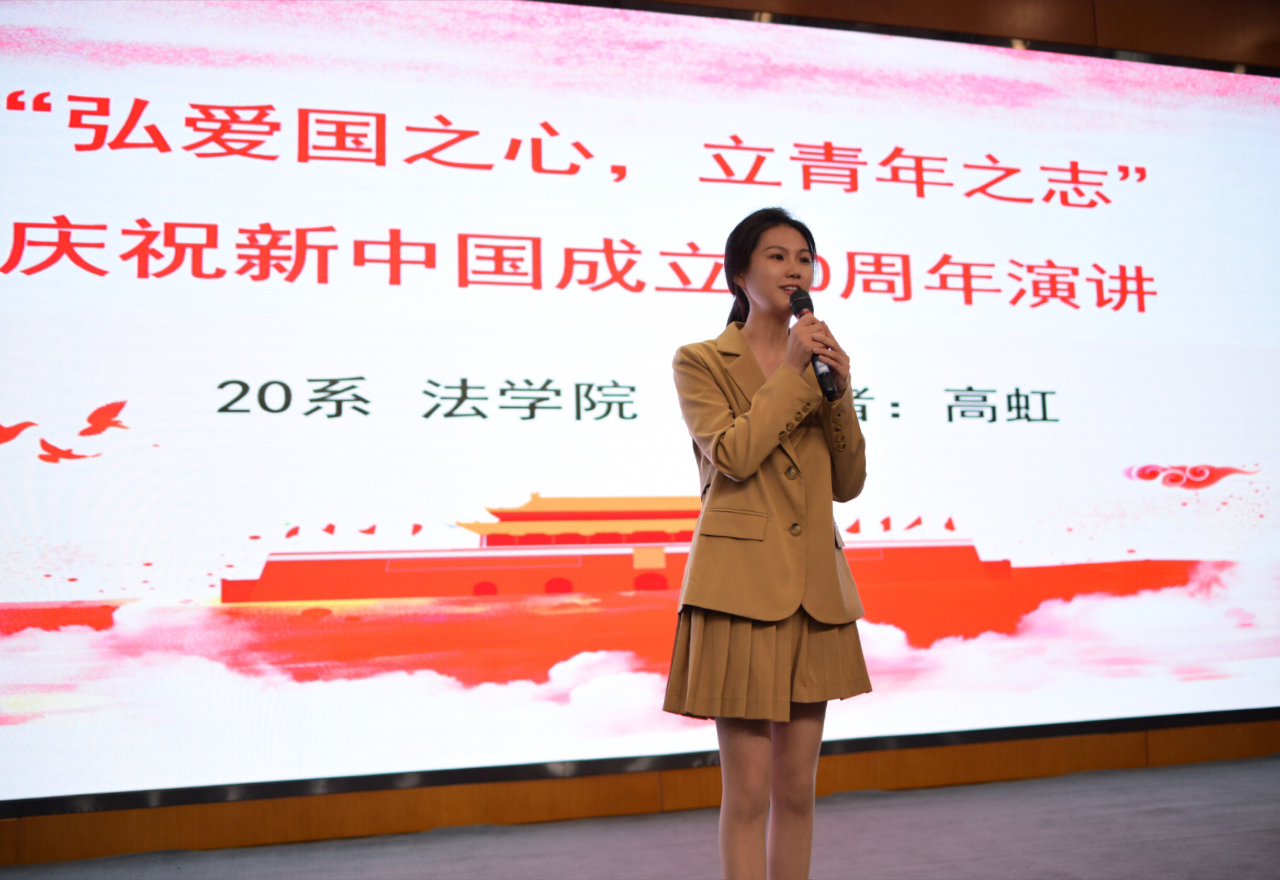 经过初赛和决赛,公司2018级法律硕士研究生高虹同学从二十余位选手中脱颖而出,最终获得总比赛的冠军。高虹同学以《听祖国讲那过去的故事》为题目,从曾是抗战老兵的外公讲起,可歌可泣地峥嵘岁月,过往历史的一幕幕在高虹同学的精彩演讲中,获得了在场评委和同学们的阵阵掌声和共鸣。