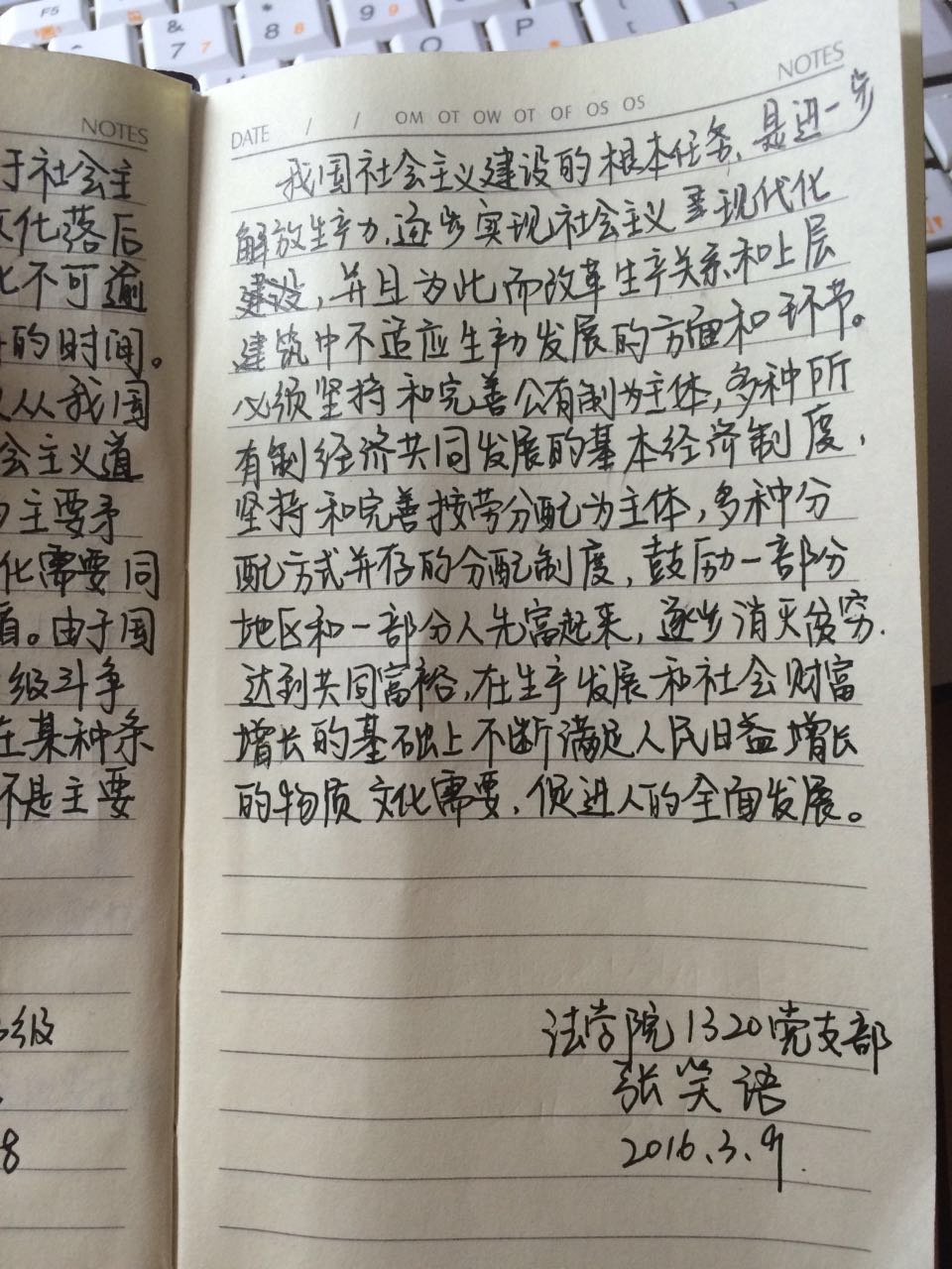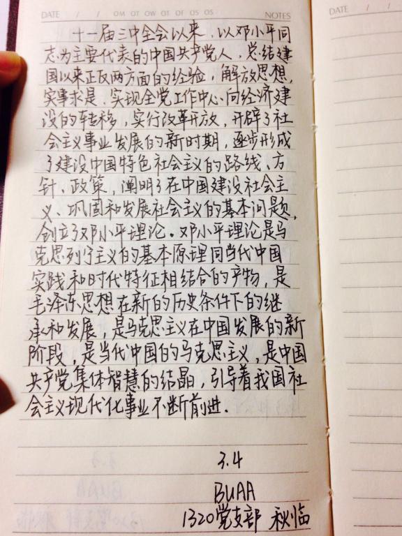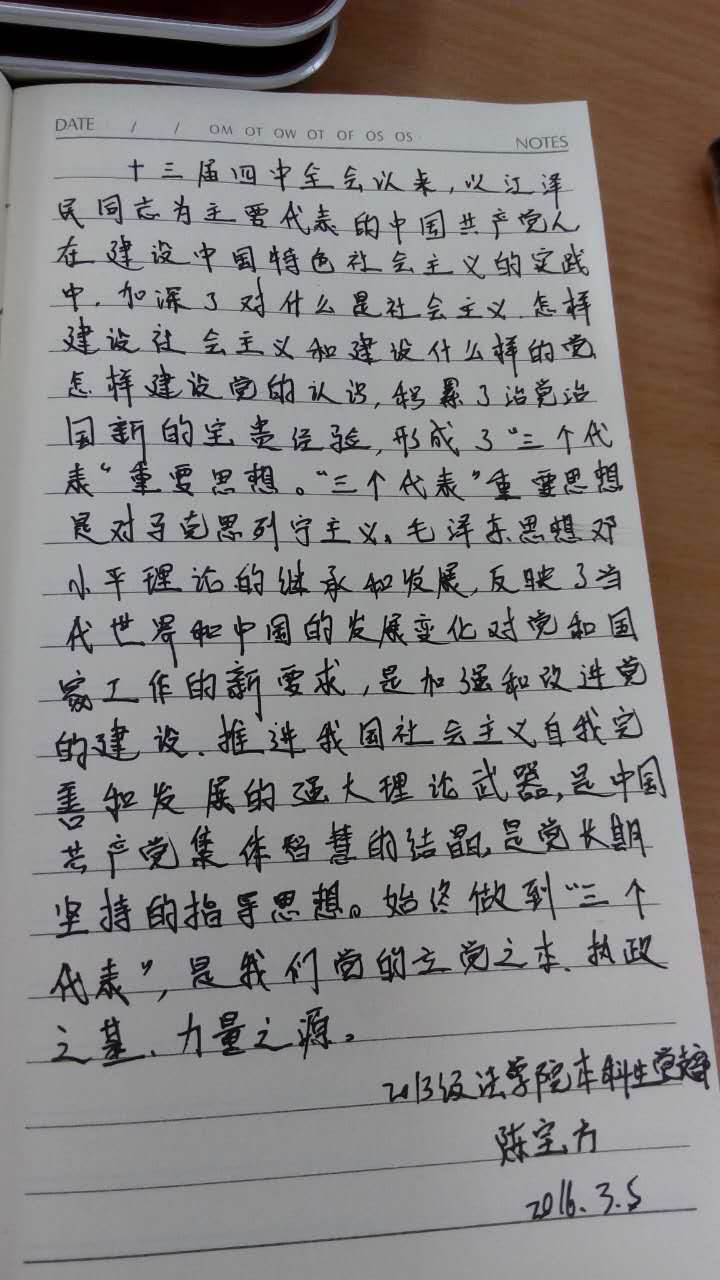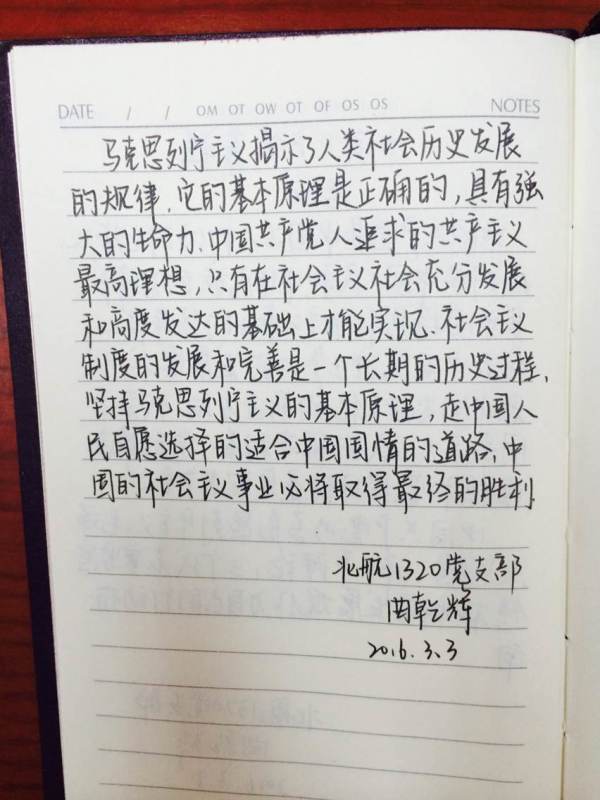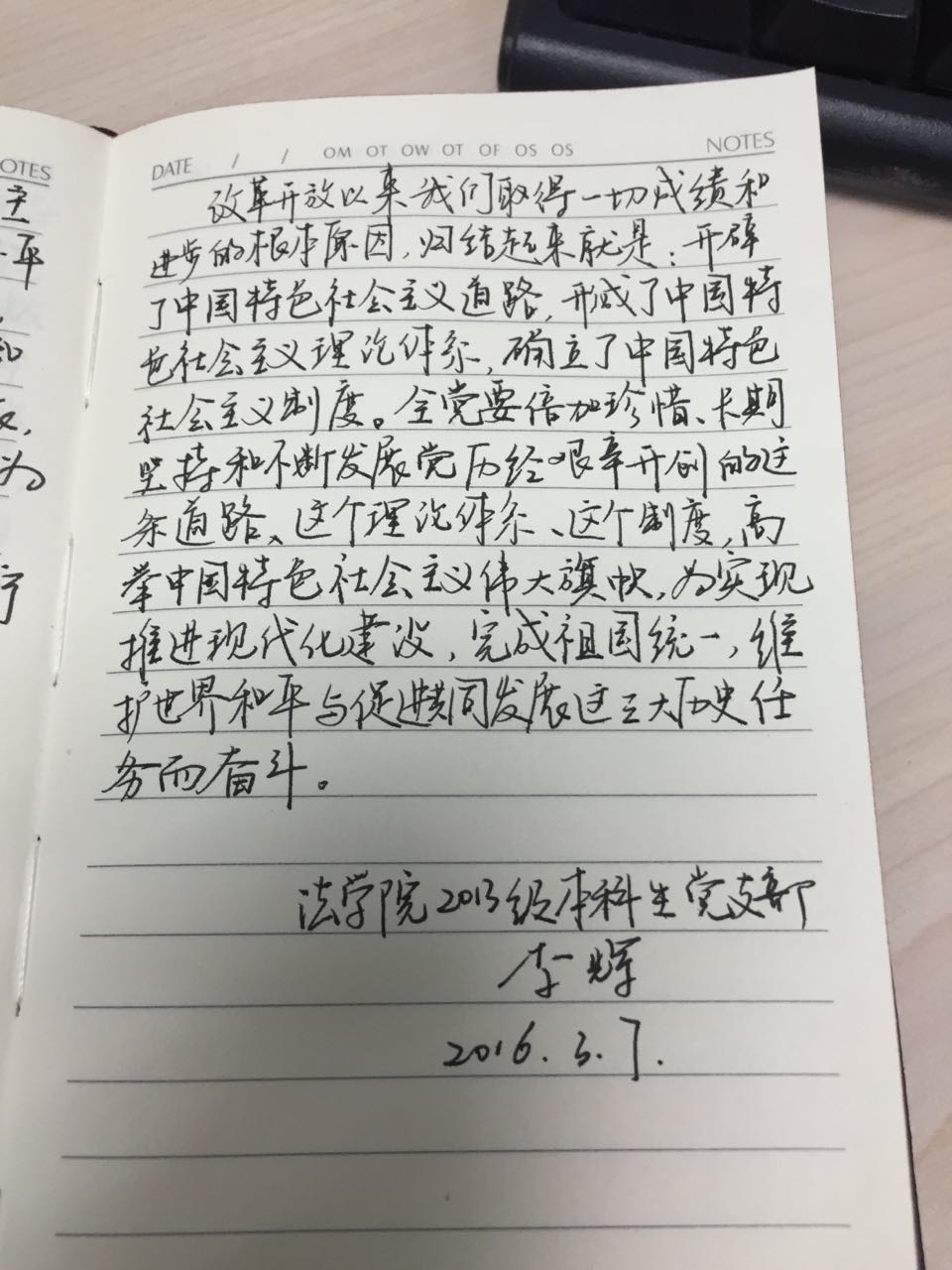 2016年,党中央决定在全体党员中,开展“学党章党规、学系列讲话,做合格党员”(以下简称“两学一做”)学习教育活动。2016年3月2日开始,yl7703永利2013级本科生党支部(以下简称1320党支部)在支部书记李辉的带领下,深刻领会“两学一做”学习教育精神,深入学习党章包含的思想精髓和时代要求,全面启动“手抄党章100天”活动。