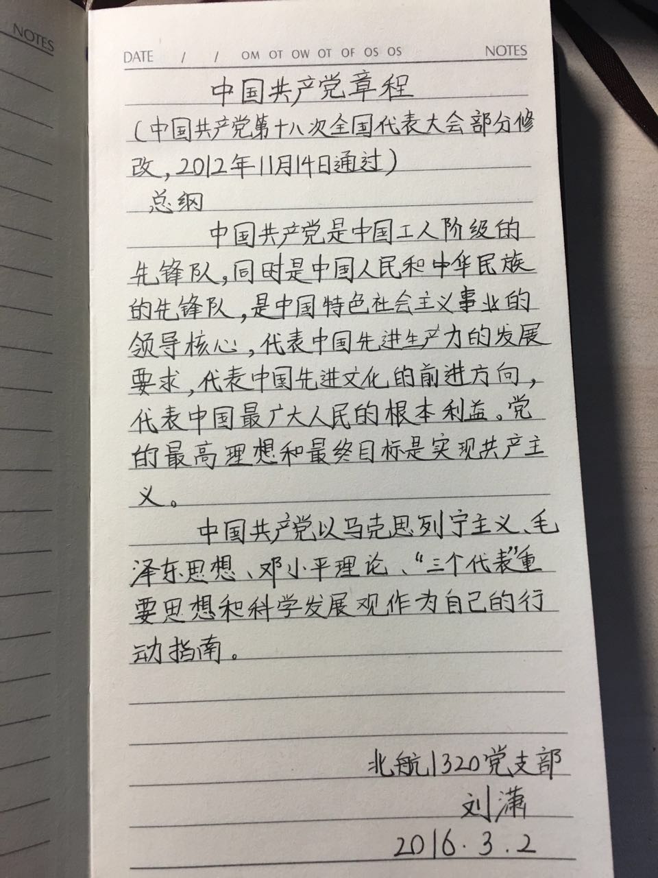 下面是活动开展十天以来,1320党支部“手抄党章100天”活动的精彩照片。