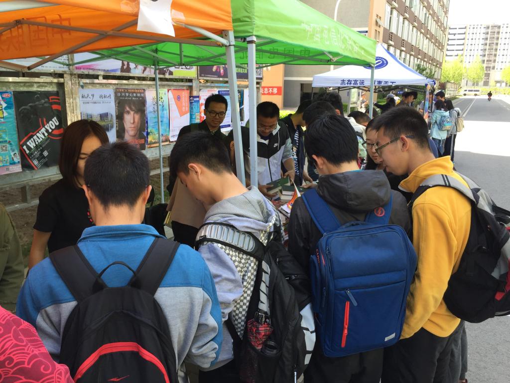 在前期的收书活动中,我们就得到了公司内外同学们的广泛支持,收集到了很多不同种类的书籍,包括大学通识类教材、英语四六级、雅思、托福、法学经济管理类和课外读物小说等。在外场的低价售书和旧书漂流期间,也受到了全校师生的欢迎。整个过程进行得如火如荼,前来书篷买书的同学们络绎不绝。
