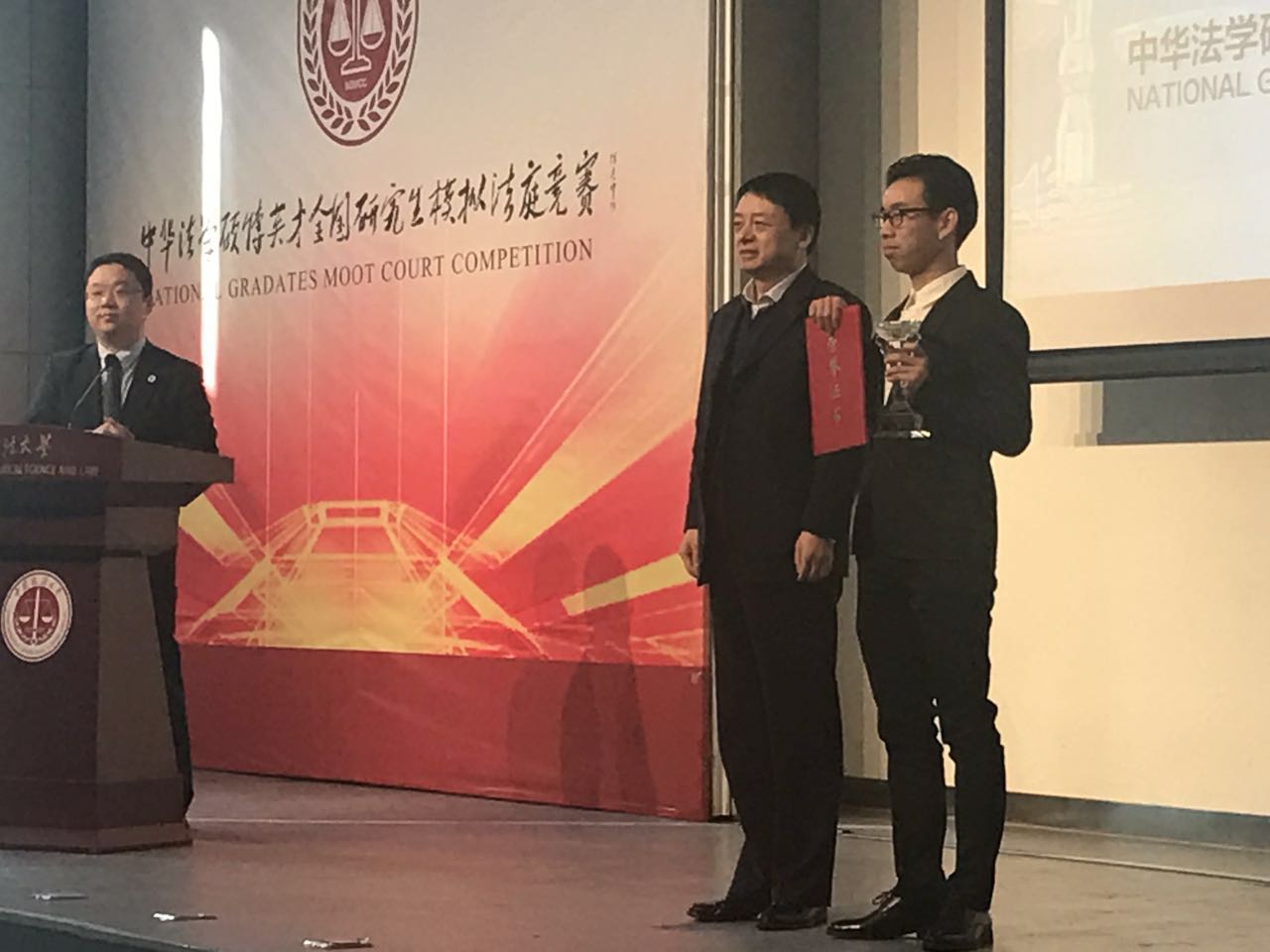 中国政法大学马怀德副董事长向公司代表队颁发冠军奖杯和证书