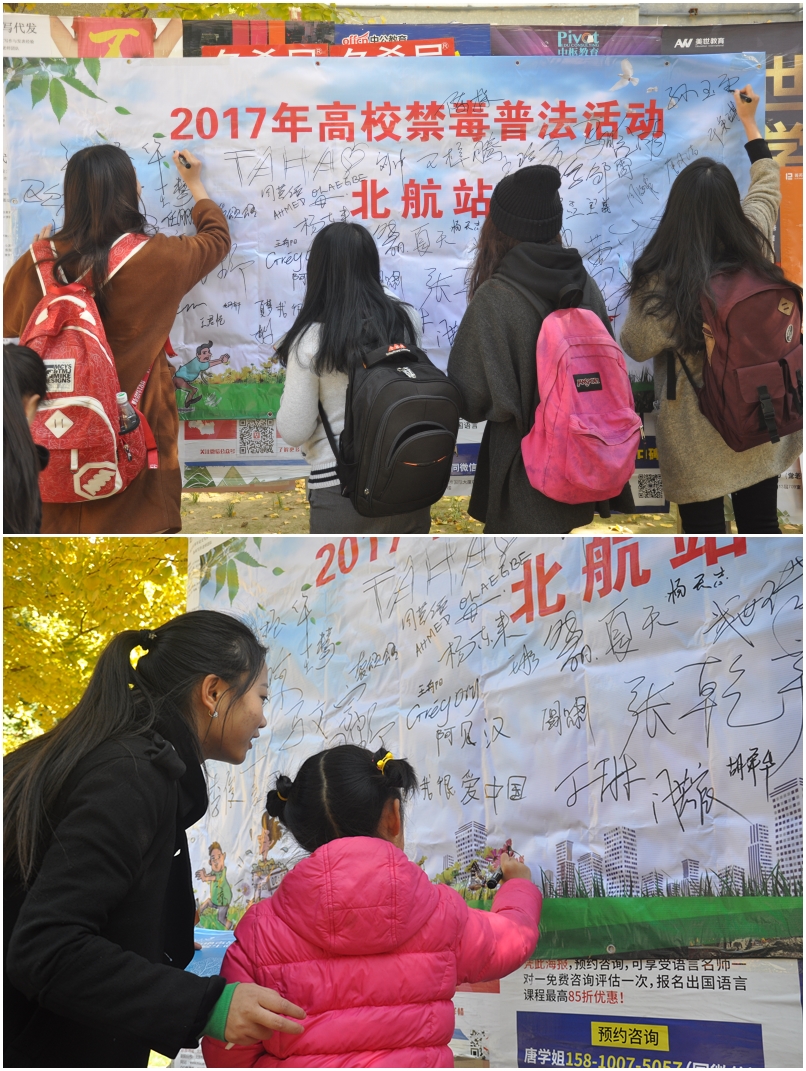 本次禁毒普法宣传活动面向的人群范围广泛,在签名仪式上,有可爱的小朋友还有有活力的老爷爷,有热情的同学还有我们辛苦的保安大哥,还有国外的职工也积极参加了此次禁毒宣传工作,他们都表示禁毒势在必行,并愿意为此而做出贡献。现场的同学们积极了解禁毒知识,对不太了解的领域也积极询问青春船长志愿者。通过交流同学们也认识到应该多学习禁毒知识,并且应该为禁毒宣传尽一份力。