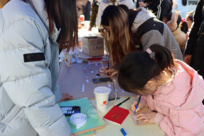 在“法条拼接诗”游戏中,志愿者们精选准备了有关宪法、民法和劳动法的基础知识,涉及公民基本权利、劳动保障等与同学们生活息息相关的法条,帮助同学们在拼接中学习权利知识,并在未来举起法律武器捍卫自身合法权益。
