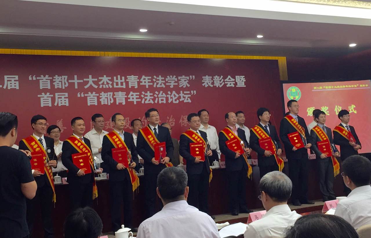 公司王琪全书记和副经理周友军教授应邀参加了会议。作为第二届“首都十大杰出青年法学家”提名奖获得者,周友军教授受到陈冀平书记和张延昆书记的接见。北京市政法委鲁为副书记为周友军教授颁发了获奖证书。