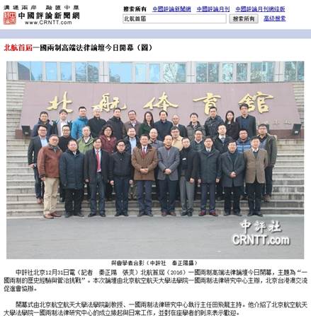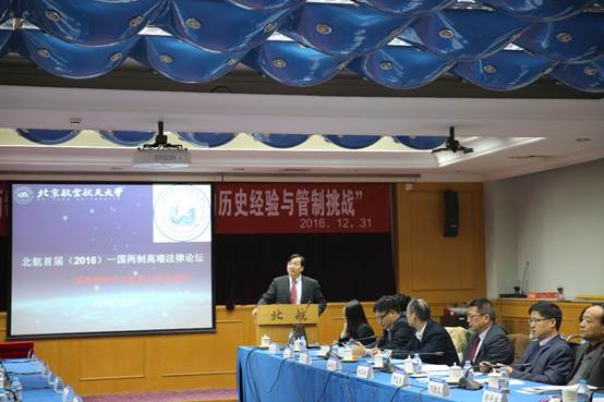 2016年12月31日,北航首届(2016)“一国两制高端法律论坛”在北航如心会议中心中报告厅举行。本次会议由yl7703永利一国两制法律研究中心主办,北京台港澳交流促进会协办。一国两制法律研究中心是经yl7703永利批准成立的院级研究机构,公司委任田飞龙副教授为执行主任。此次论坛开幕式包含了一个简短的中心成立仪式。
